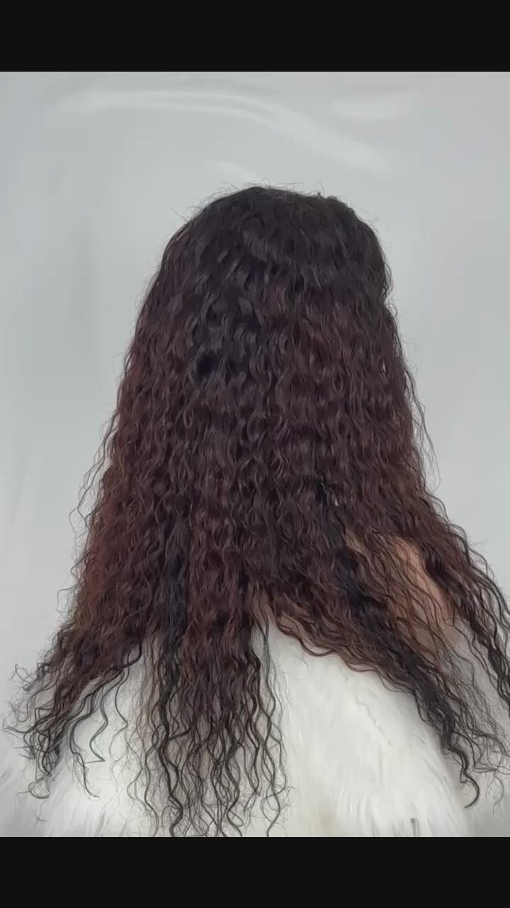 Perruque frisée, longue, 100% cheveux humains, avec un élastique à l'arrière pour la porter sans colle, longue et soyeuse; elle peut être colorée, décolorée. Avec une grande espérance de vie.