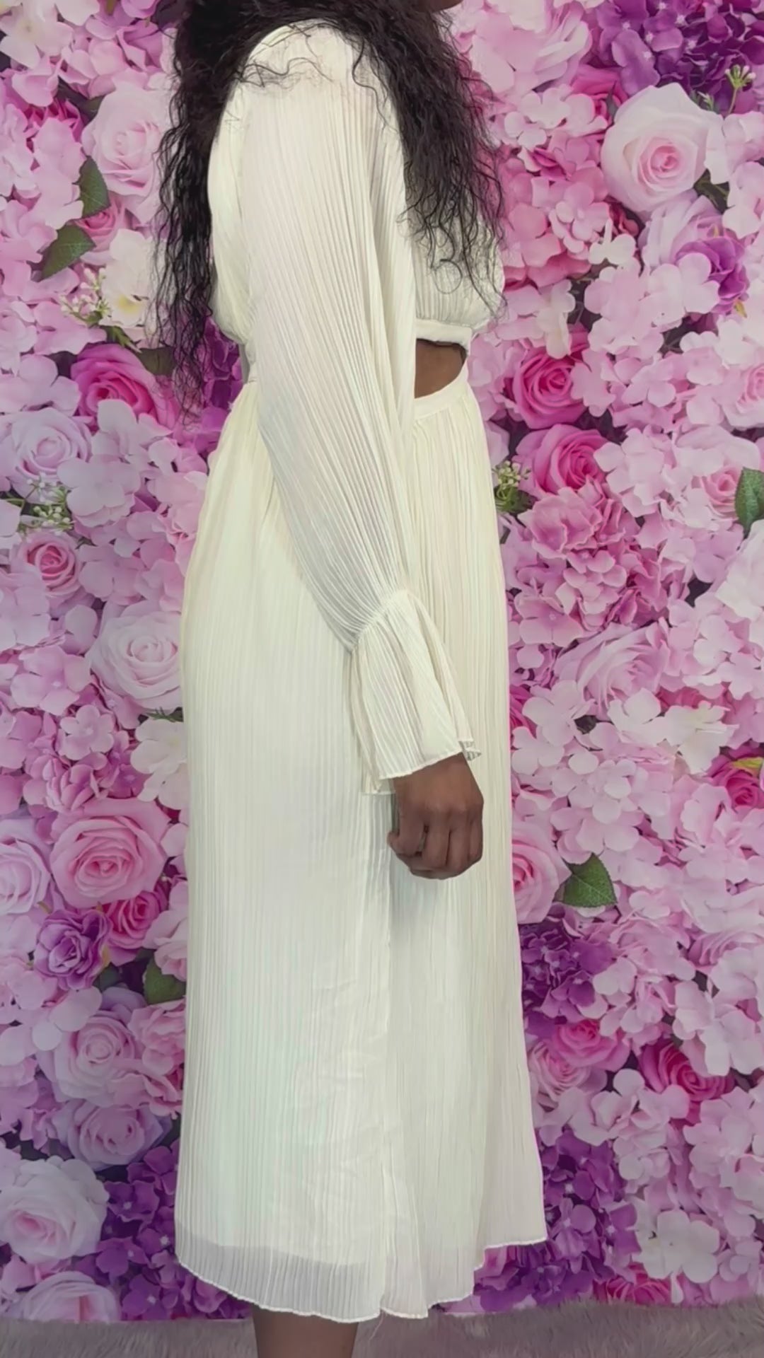 Jolie robe midi, manches longues, légère et plissée